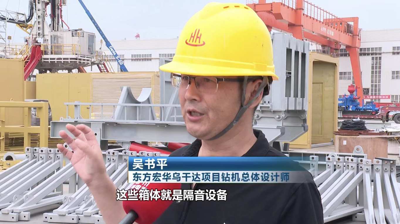 “你看這些集裝箱一樣的隔艙就是我們做的隔音措施,按照規(guī)定可以將噪音控制在五十分貝內(nèi),這是什么概念呢?我們正常講話的音量在四十分貝左右。”東方宏華烏干達(dá)項目鉆機(jī)總體設(shè)計師吳書平說。