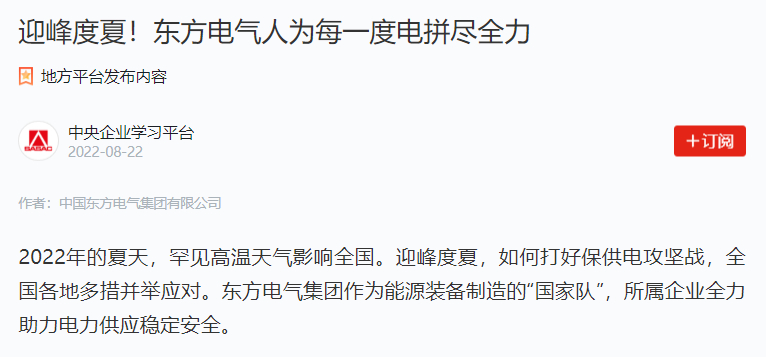 東方電氣集團將心懷“國之大者”,主動扛起央企責任擔當,全力以赴打好電力保供攻堅戰(zhàn),為更好服務地方經(jīng)濟社會發(fā)展貢獻“東方力量”。