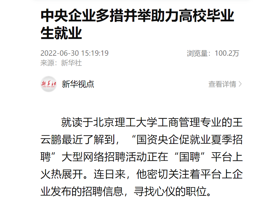 如今,無論在大型招聘網(wǎng)站、企業(yè)微信公眾號,還是高校的校園宣講會,面臨就業(yè)選擇和挑戰(zhàn)的畢業(yè)生們都可以較為便利地了解到中央企業(yè)發(fā)布的招聘信息。