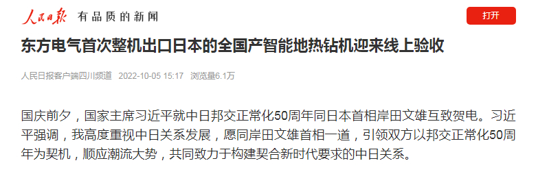 國慶前夕,國家主席習(xí)近平就中日邦交正?;?0周年同日本首相岸田文雄互致賀電。習(xí)近平強調(diào),我高度重視中日關(guān)系發(fā)展,愿同岸田文雄首相一道,引領(lǐng)雙方以邦交正?;?0周年為契機,順應(yīng)潮流大勢,共同致力于構(gòu)建契合新時代要求的中日關(guān)系。
