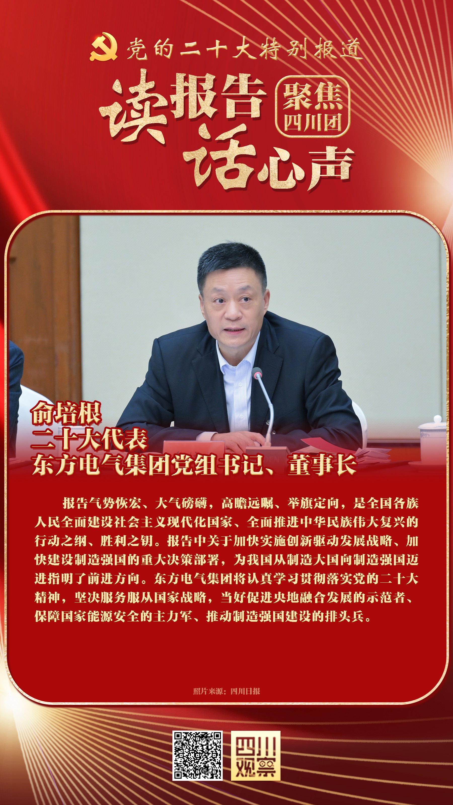 俞培根代表說,報告氣勢恢宏、大氣磅礴,高瞻遠矚、舉旗定向,是全國各族人民全面建設社會主義現代化國家、全面推進中華民族偉大復興的行動之綱、勝利之鑰。報告中關于加快實施創(chuàng)新驅動發(fā)展戰(zhàn)略、加快建設制造強國的重大決策部署,為我國從制造大國向制造強國邁進指明了前進方向。東方電氣集團將認真學習貫徹落實黨的二十大精神,堅決服務服從國家戰(zhàn)略,當好促進央地融合發(fā)展的示范者、保障國家能源安全的主力軍、推動制造強國建設的排頭兵。