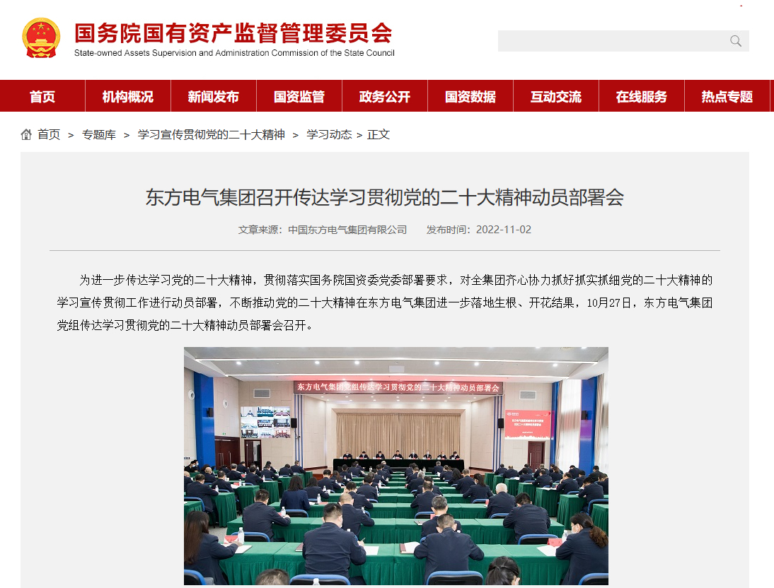 為進(jìn)一步傳達(dá)學(xué)習(xí)黨的二十大精神,貫徹落實(shí)國務(wù)院國資委黨委部署要求,對全集團(tuán)齊心協(xié)力抓好抓實(shí)抓細(xì)黨的二十大精神的學(xué)習(xí)宣傳貫徹工作進(jìn)行動(dòng)員部署,不斷推動(dòng)黨的二十大精神在東方電氣集團(tuán)進(jìn)一步落地生根、開花結(jié)果,10月27日,東方電氣集團(tuán)黨組傳達(dá)學(xué)習(xí)貫徹黨的二十大精神動(dòng)員部署會(huì)召開。