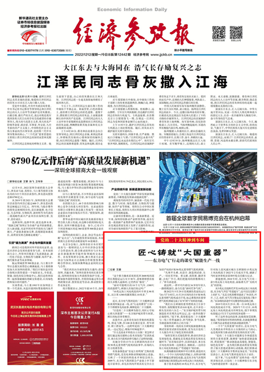 “黨的二十大報告對能源安全和建設發(fā)展作出重要部署,強調要‘加快建設制造強國、質量強國’‘推動制造業(yè)高端化、智能化、綠色化發(fā)展’。這為我們推進高質量發(fā)展提供了強大思想武器和行動指南,我們要推動黨的二十大精神在全集團走深走實?!痹谑讏鲂v會上,東方電氣集團黨組發(fā)出了動員。