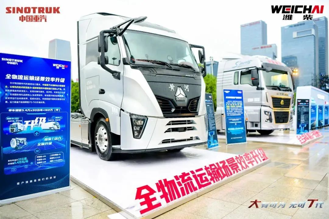 ▲中國重汽推出全球首款風(fēng)阻系數(shù)0.37的全新一代高端黃河重卡。