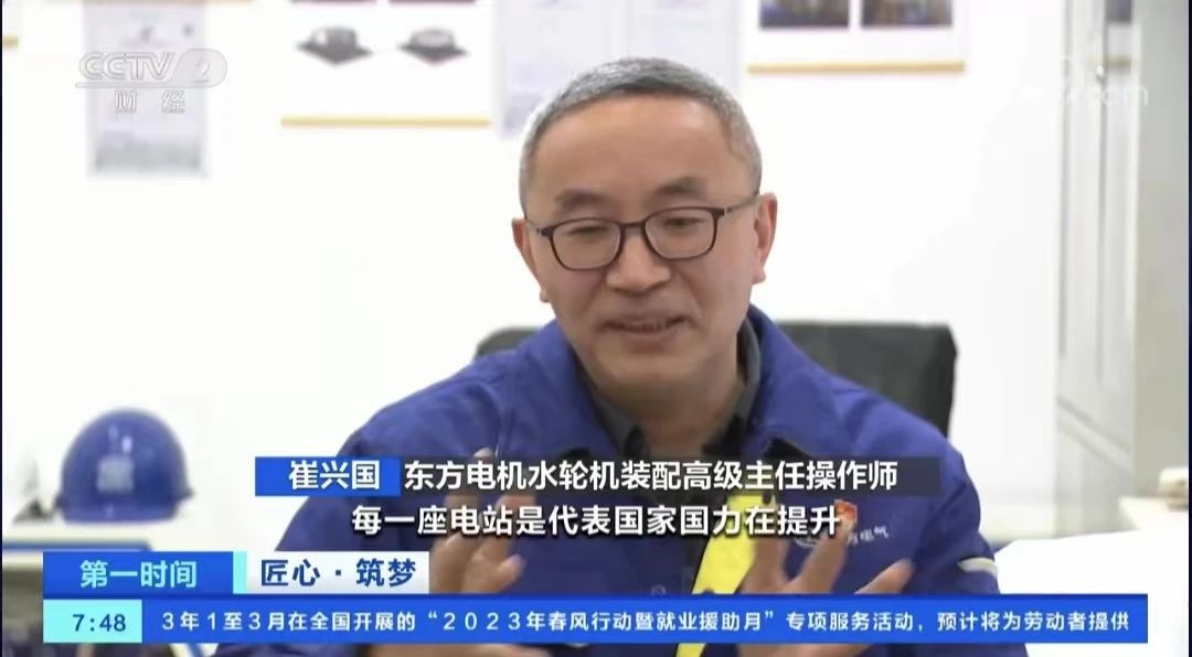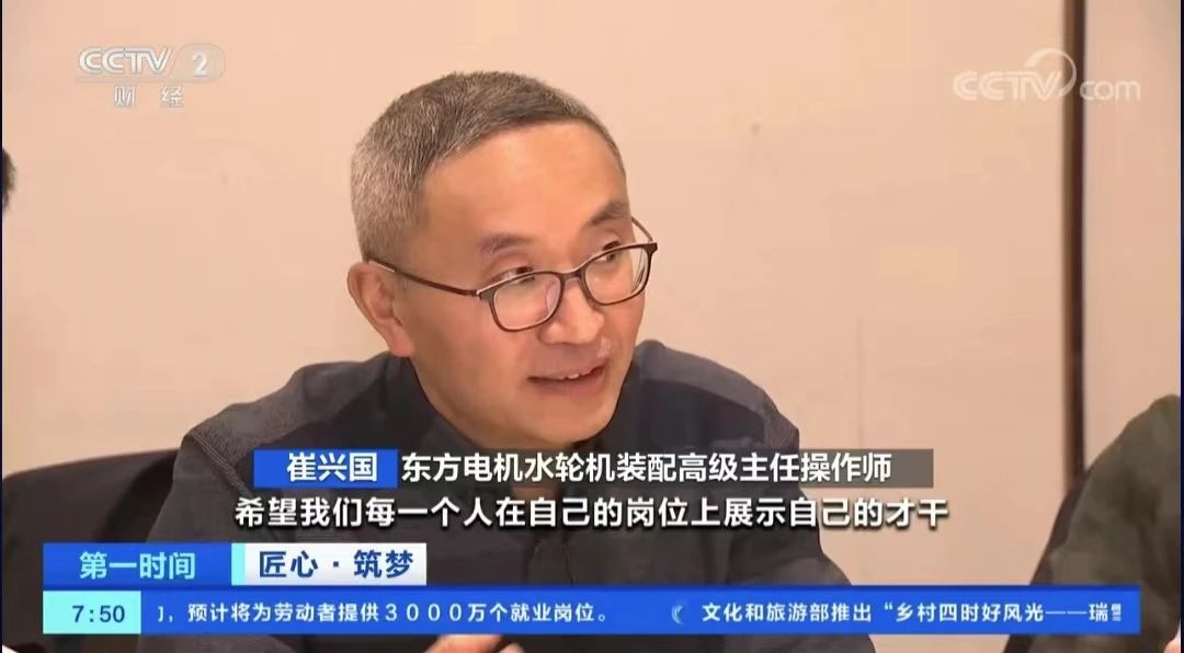 歲月添新,春滿山河。1月22日大年初一,央視財(cái)經(jīng)頻道推出系列報(bào)道《匠心·筑夢(mèng)》,尋找不同行業(yè)背后那些大國(guó)工匠的故事。節(jié)目首期聚焦東方電氣集團(tuán)東方電機(jī)有限公司從事水輪機(jī)裝配30余年的老工匠——全國(guó)人大代表、水輪機(jī)裝配高級(jí)主任操作師崔興國(guó)。報(bào)道內(nèi)容如下。