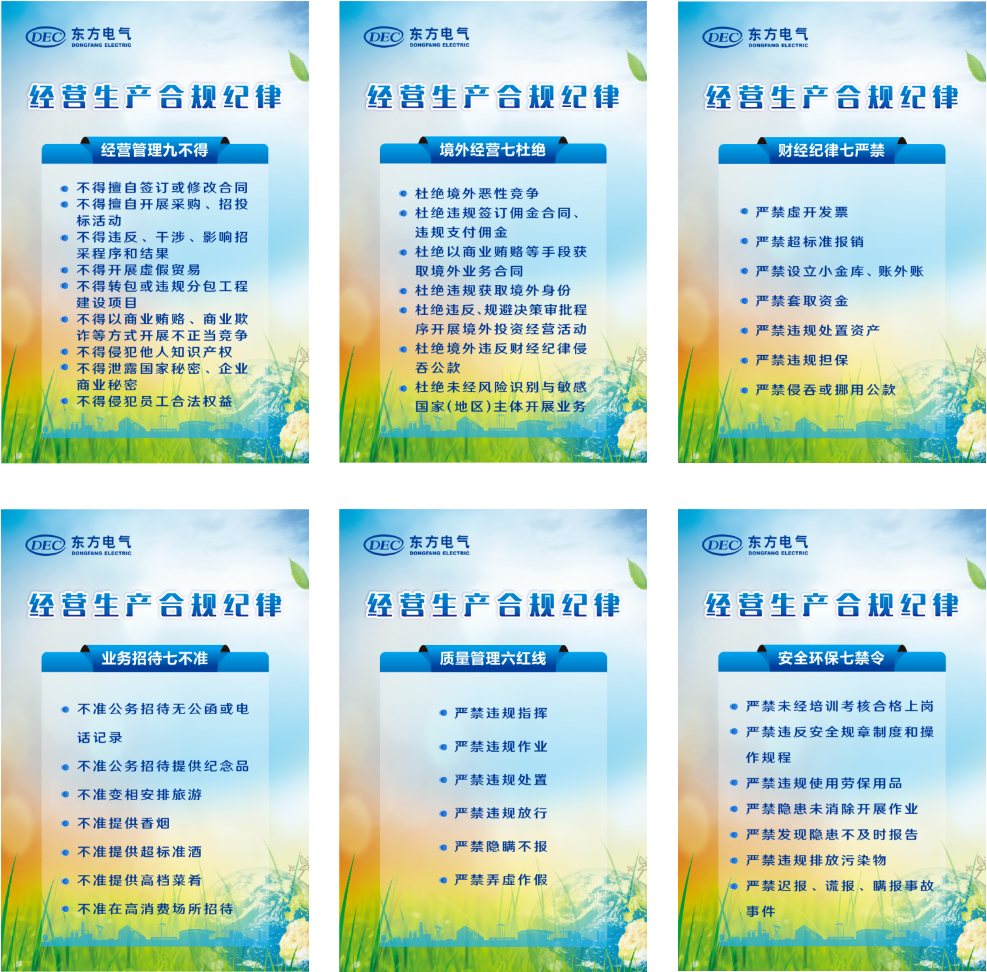 會(huì)議發(fā)布了合規(guī)理念、合規(guī)紀(jì)律。合規(guī)理念是全體東方電氣人必須共同遵循的準(zhǔn)則,也是公司向監(jiān)管機(jī)構(gòu)、投資者、社會(huì)公眾作出的鄭重承諾。合規(guī)紀(jì)律是對重點(diǎn)經(jīng)營業(yè)務(wù)領(lǐng)域工作提出的禁止性規(guī)定,旨在幫助全體員工理解掌握合規(guī)要求,嚴(yán)守合規(guī)底線。會(huì)議強(qiáng)調(diào),各單位要抓好宣貫,真正讓合規(guī)理念和紀(jì)律入腦入心見于行。一是強(qiáng)化合規(guī)管理頂層推動(dòng),各單位主要領(lǐng)導(dǎo)持續(xù)落實(shí)好第一責(zé)任人職責(zé),優(yōu)化完善合規(guī)管理議事協(xié)調(diào)機(jī)構(gòu)設(shè)置,形成“以上率下、上下聯(lián)動(dòng)”的濃厚合規(guī)管理氛圍。二是完善合規(guī)管理運(yùn)行機(jī)制,以“三張清單”為基礎(chǔ),推動(dòng)合規(guī)管理落地見效。三是扎實(shí)開展合規(guī)文化建設(shè)專項(xiàng)行動(dòng),強(qiáng)化責(zé)任落實(shí),確保通過專項(xiàng)行動(dòng)進(jìn)一步筑牢合規(guī)管理思想防線。會(huì)議舉辦了首次合規(guī)講堂,集團(tuán)總法律顧問兼首席合規(guī)官作首場專題講座。