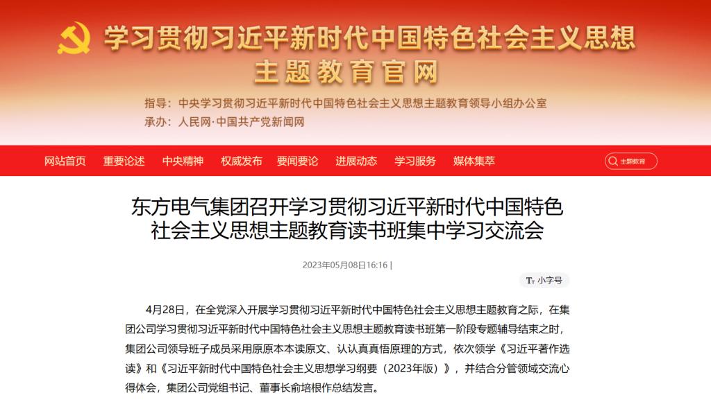 4月28日,在全黨深入開展學習貫徹習近平新時代中國特色社會主義思想主題教育之際,在集團公司學習貫徹習近平新時代中國特色社會主義思想主題教育讀書班第一階段專題輔導結束之時,集團公司領導班子成員采用原原本本讀原文、認認真真悟原理的方式,依次領學《習近平著作選讀》和《習近平新時代中國特色社會主義思想學習綱要(2023年版)》,并結合分管領域交流心得體會,集團公司黨組書記、董事長俞培根作總結發(fā)言。