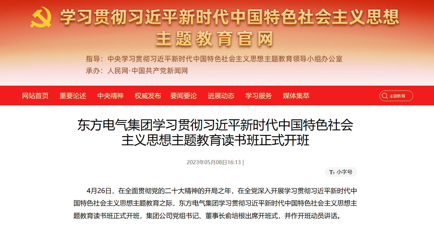 4月26日,在全面貫徹黨的二十大精神的開局之年,在全黨深入開展學(xué)習(xí)貫徹習(xí)近平新時代中國特色社會主義思想主題教育之際,東方電氣集團(tuán)學(xué)習(xí)貫徹習(xí)近平新時代中國特色社會主義思想主題教育讀書班正式開班,集團(tuán)公司黨組書記、董事長俞培根出席開班式,并作開班動員講話。