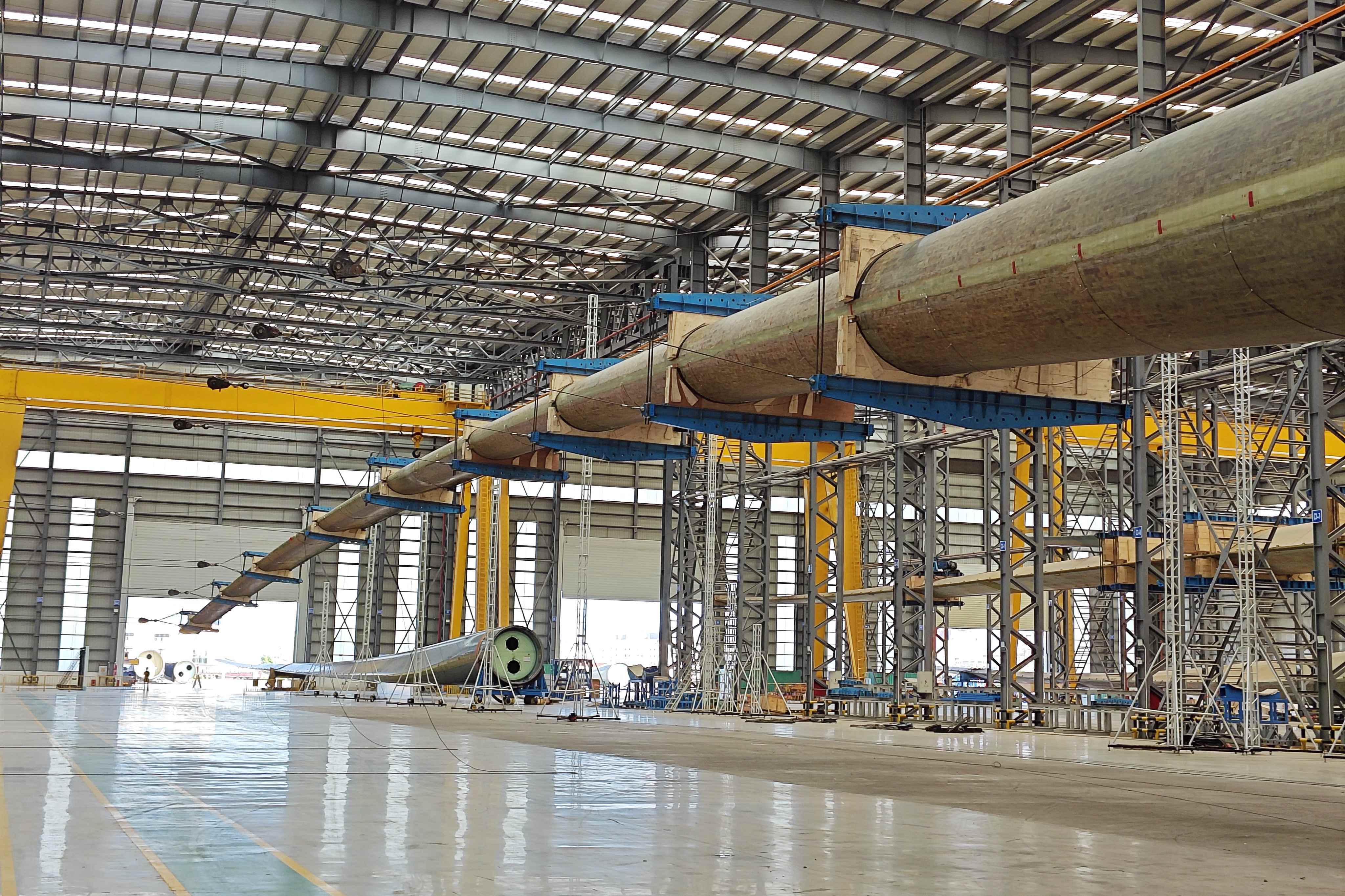 5月28日,東方電氣風電股份有限公司自主研制、擁有完全自主知識產(chǎn)權(quán)的B1260A型葉片,在江蘇葉片制造基地順利下線,該葉片長126米,是目前全球已下線的最長風電葉片。同日,東方風電自主研制的B1200A型葉片一次性順利通過靜力試驗,各項測試指標與設計值良好吻合,120米級葉片的材料、結(jié)構(gòu)、工藝及質(zhì)量控制得到了充分有效驗證。