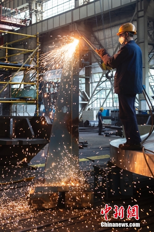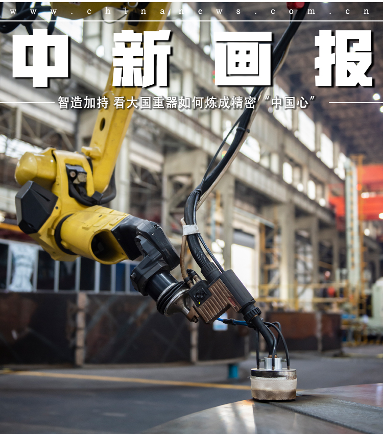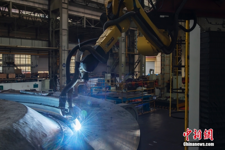 目前,車間已經建成集重型機加控制、數字化裝配、機器人焊接等為一體的新一代清潔能源裝備重型制造車間。圖為車間里的機器人焊接作業(yè)。