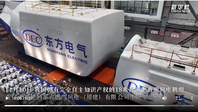 11月10日,我國(guó)擁有完全自主知識(shí)產(chǎn)權(quán)的18兆瓦海上直驅(qū)風(fēng)電機(jī)組,在位于福建的東方電氣風(fēng)電(福建)有限公司生產(chǎn)基地下線。