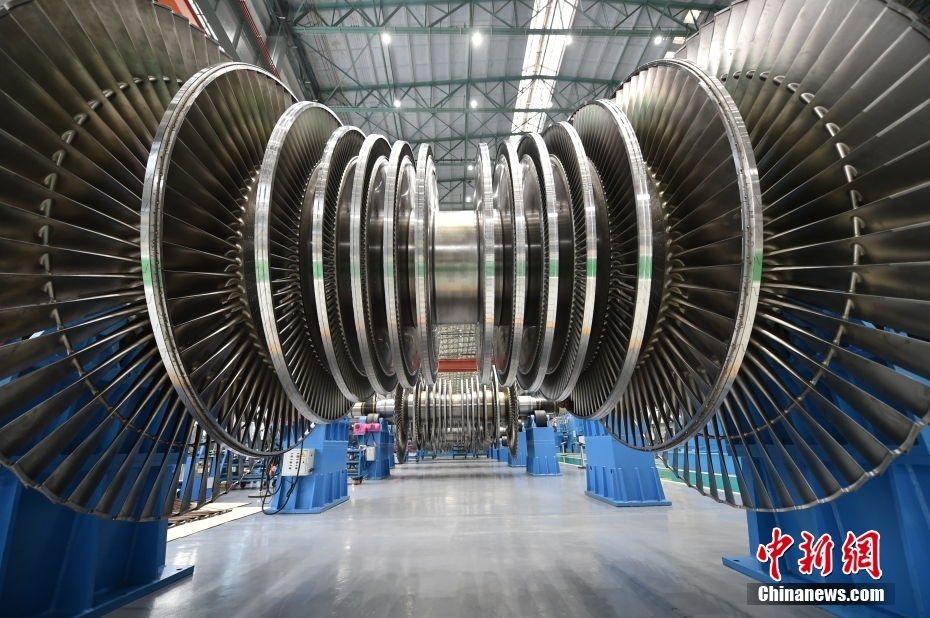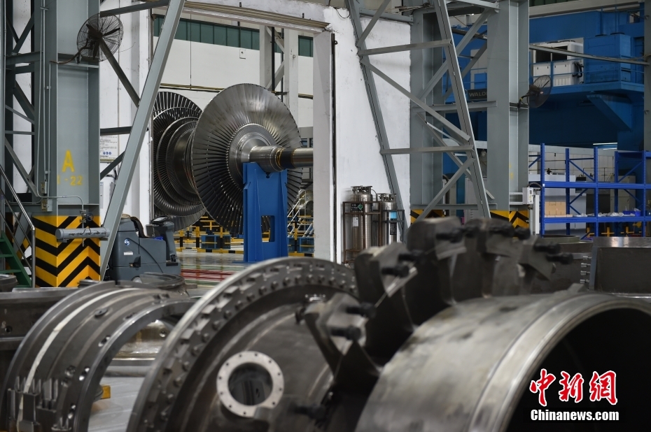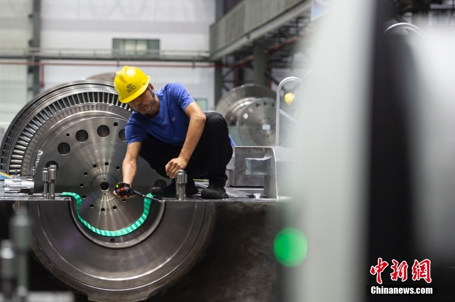 圖為車間里的一線員工在裝配汽輪機(jī)轉(zhuǎn)子。