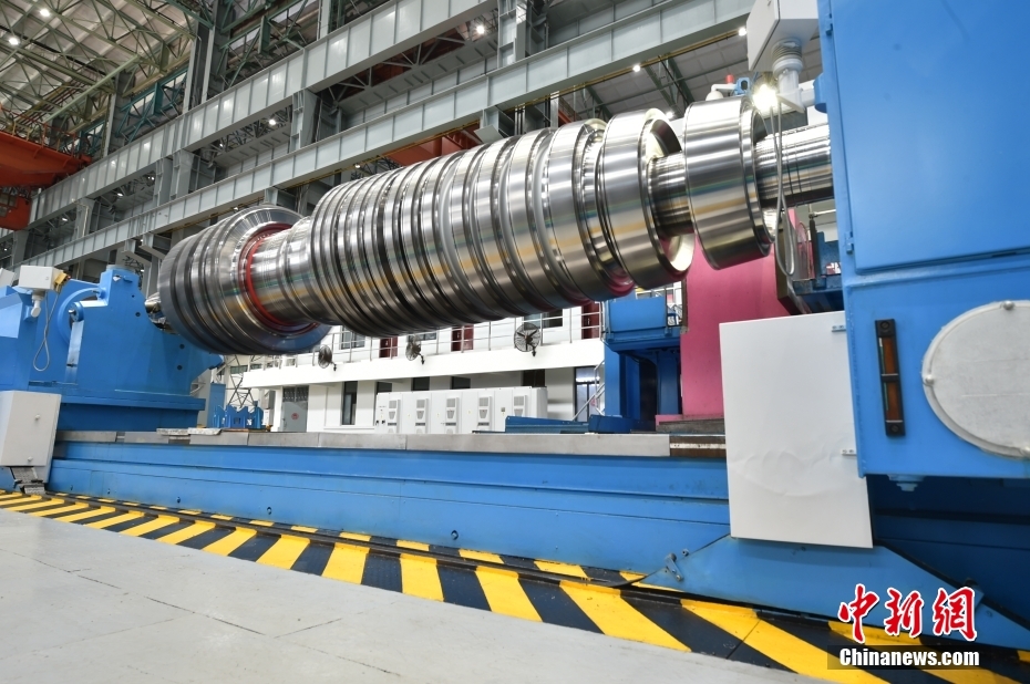 圖為車間里擺放的汽輪機(jī)轉(zhuǎn)子。