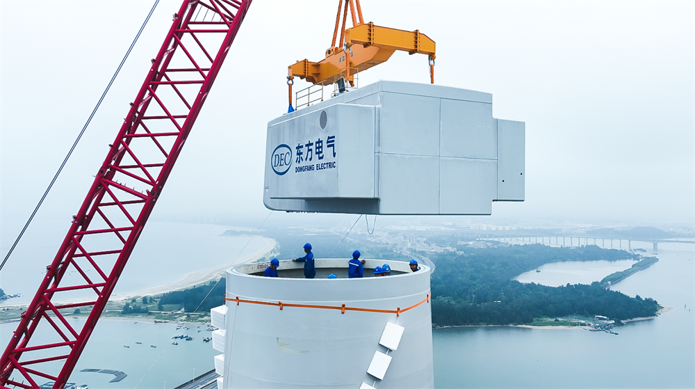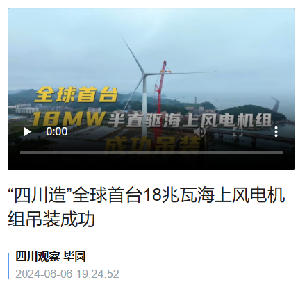6月5日,由位于四川的東方電氣集團自主研制的首臺18兆瓦半直驅(qū)大功率海上風(fēng)電機組在廣東省汕頭市風(fēng)電臨海試驗基地成功完成吊裝,成為當(dāng)前全球已安裝的最大功率等級海上風(fēng)電裝備,標(biāo)志著全球海上風(fēng)電機組功率等級邁入新的里程碑。
