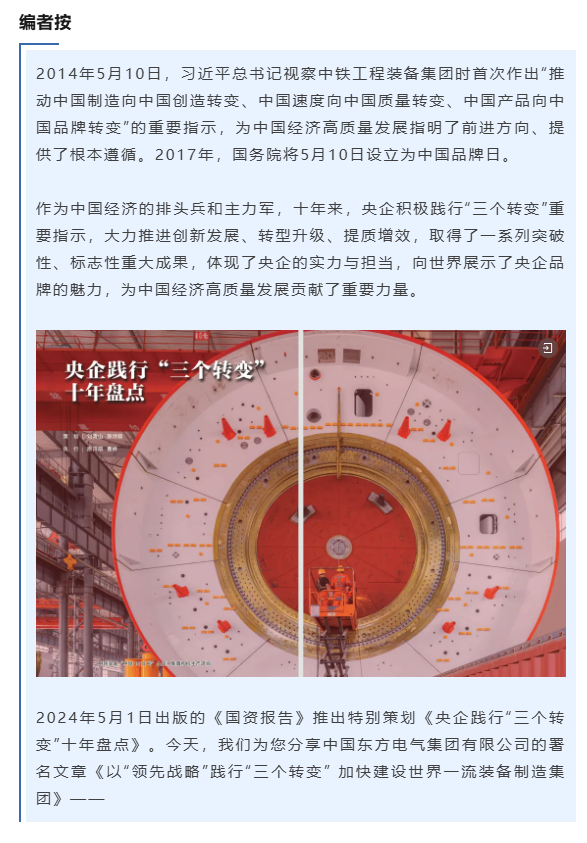 東方電氣集團深入實施領(lǐng)先戰(zhàn)略,推動“質(zhì)量立企”向“質(zhì)量強企”“質(zhì)量領(lǐng)先”邁進。
