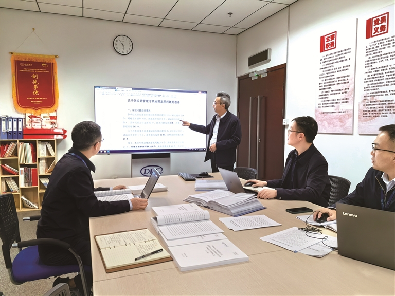 圖為東方電氣集團(tuán)供應(yīng)商管理專項(xiàng)治理綜合組工作人員正在進(jìn)行專項(xiàng)研討。 東方電氣集團(tuán)紀(jì)檢監(jiān)察組供圖