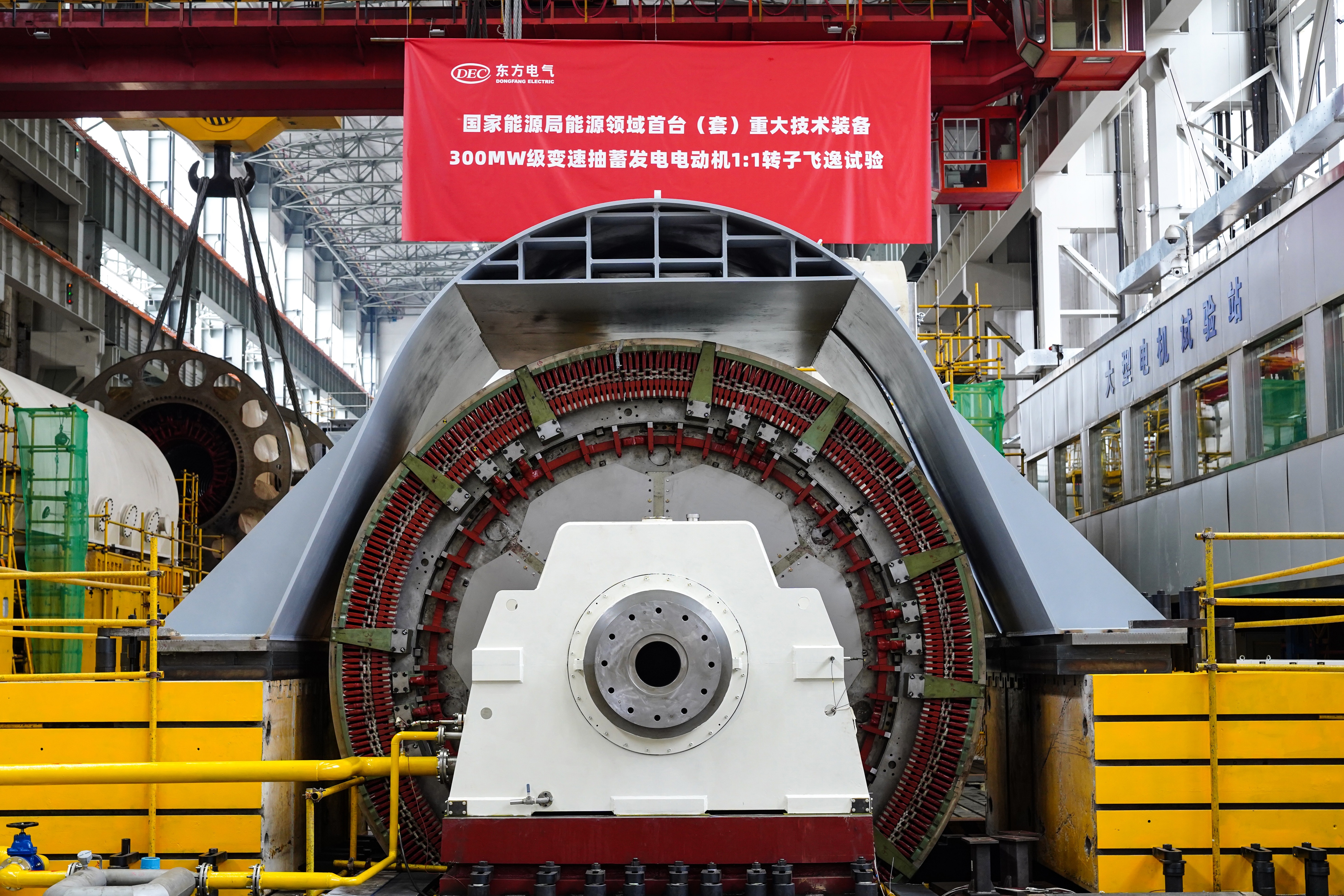 8月16日,東方電氣集團(tuán)自主研制的國家能源局能源領(lǐng)域首臺(套)重大技術(shù)裝備項目——300兆瓦級變速抽水蓄能機組發(fā)電電動機1:1轉(zhuǎn)子順利通過飛逸試驗,轉(zhuǎn)子動態(tài)穩(wěn)定性、可靠性等性能得到充分驗證,標(biāo)志著我國變速抽水蓄能機組自主研制取得重大突破。