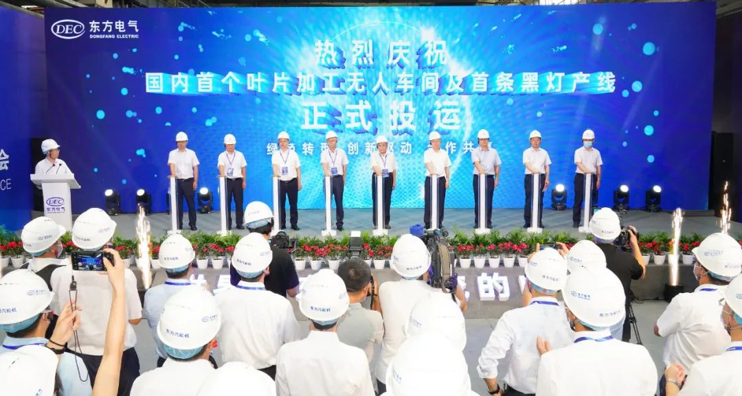 8月25日上午,國內(nèi)首個(gè)葉片加工無人車間及首條黑燈產(chǎn)線投運(yùn)儀式在東方汽輪機(jī)舉行。隨著一鍵啟動(dòng),AGV小車、機(jī)器人、數(shù)控加工中心等一系列智能設(shè)備,在數(shù)據(jù)驅(qū)動(dòng)下智慧運(yùn)行,標(biāo)志著國內(nèi)首個(gè)葉片加工無人車間及首條黑燈產(chǎn)線正式投運(yùn),這里也是2022世界清潔能源裝備大會(huì)展示的示范應(yīng)用場景之一。