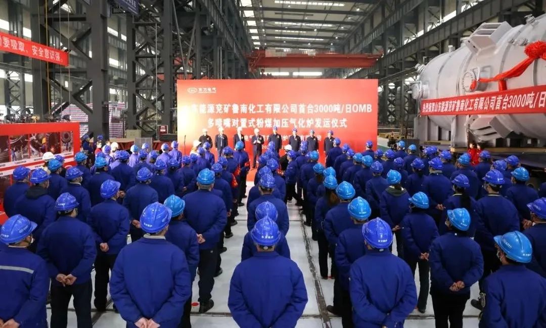 兗礦魯南化工有限公司黨委書記、董事長張嶺,華東理工大學科學技術(shù)發(fā)展研究院副院長、國家能源煤氣化研發(fā)中心主任劉海峰,東方鍋爐黨委書記、董事長林光平出席發(fā)運儀式并致辭,共同見證這一重大裝備發(fā)運啟航。東方鍋爐副總經(jīng)理許輝主持發(fā)運儀式。