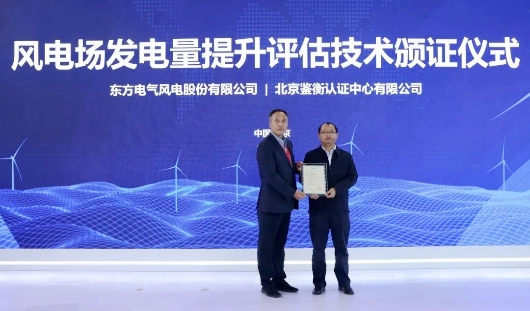 北京鑒衡認(rèn)證中心向東方風(fēng)電頒發(fā)《風(fēng)電場(chǎng)發(fā)電量提升評(píng)估技術(shù)》認(rèn)證證書。由東方風(fēng)電完全自主研發(fā)的風(fēng)電場(chǎng)發(fā)電量提升評(píng)估技術(shù),解決了風(fēng)速變化下的應(yīng)發(fā)電量核算難題。通過(guò)應(yīng)發(fā)電量和實(shí)際發(fā)電量對(duì)比分析,可實(shí)時(shí)掌握風(fēng)場(chǎng)電量損失、增益等情況,從而評(píng)估整個(gè)風(fēng)電場(chǎng)的發(fā)電性能情況。經(jīng)鑒衡理論評(píng)估及可行性驗(yàn)證,這項(xiàng)技術(shù)已經(jīng)成為行業(yè)首個(gè)可操作、可量化、可計(jì)算的電量提升評(píng)估方法,促進(jìn)了風(fēng)電行業(yè)服務(wù)的轉(zhuǎn)型升級(jí)。目前,該技術(shù)已授權(quán)發(fā)明專利1項(xiàng),發(fā)布團(tuán)體標(biāo)準(zhǔn)1項(xiàng),進(jìn)一步實(shí)現(xiàn)電量提升計(jì)算有標(biāo)可依。