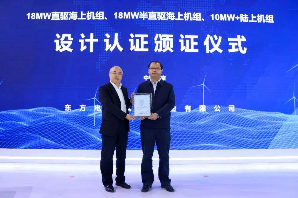 10月17日,在2023年北京國(guó)際風(fēng)能大會(huì)暨展覽會(huì)上,東方電氣風(fēng)電股份有限公司正式發(fā)布了18MW直驅(qū)海上風(fēng)電機(jī)組、18MW半直驅(qū)海上風(fēng)電機(jī)組、10MW+陸上風(fēng)電機(jī)組三款新產(chǎn)品,這三款機(jī)型是東方風(fēng)電適應(yīng)我國(guó)風(fēng)電大型化、平價(jià)化發(fā)展需求最新開發(fā)的旗艦產(chǎn)品。展會(huì)上,東方電氣風(fēng)電股份有限公司組織開展了相關(guān)專題技術(shù)交流,三款新產(chǎn)品同時(shí)獲得中國(guó)質(zhì)量認(rèn)證中心頒發(fā)的設(shè)計(jì)認(rèn)證證書。