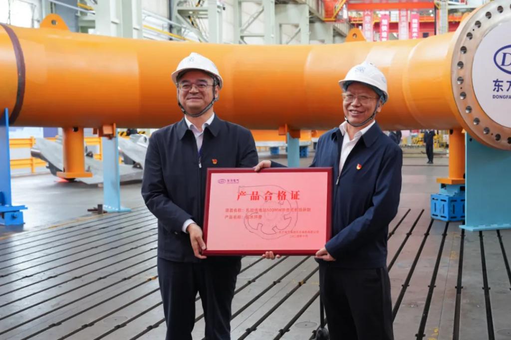 雙方代表移交了大唐扎拉水電站國產(chǎn)化首臺500兆瓦沖擊式機(jī)組配水環(huán)管合格證。
