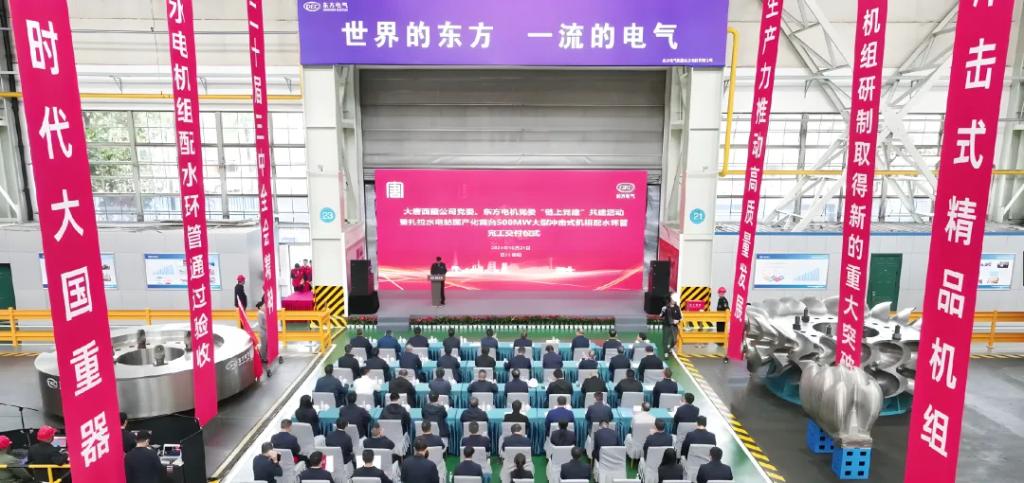 王軍向出席見證活動的領(lǐng)導(dǎo)專家表示熱烈的歡迎,感謝大家長期以來對東方電氣集團(tuán)的關(guān)心、支持和幫助,向大唐扎拉水電站500兆瓦沖擊式水電機(jī)組研制團(tuán)隊表示祝賀。他表示,大唐扎拉水電站500兆瓦沖擊式水電機(jī)組配水環(huán)管完工交付,對進(jìn)一步提升東方電氣集團(tuán)水電機(jī)組的研發(fā)制造能力、推動水電產(chǎn)業(yè)高質(zhì)量發(fā)展、實(shí)現(xiàn)“雙碳”目標(biāo)具有重要意義。愿雙方打造更多精品工程、示范項(xiàng)目,為推進(jìn)中國式現(xiàn)代化作出新的更大貢獻(xiàn)。