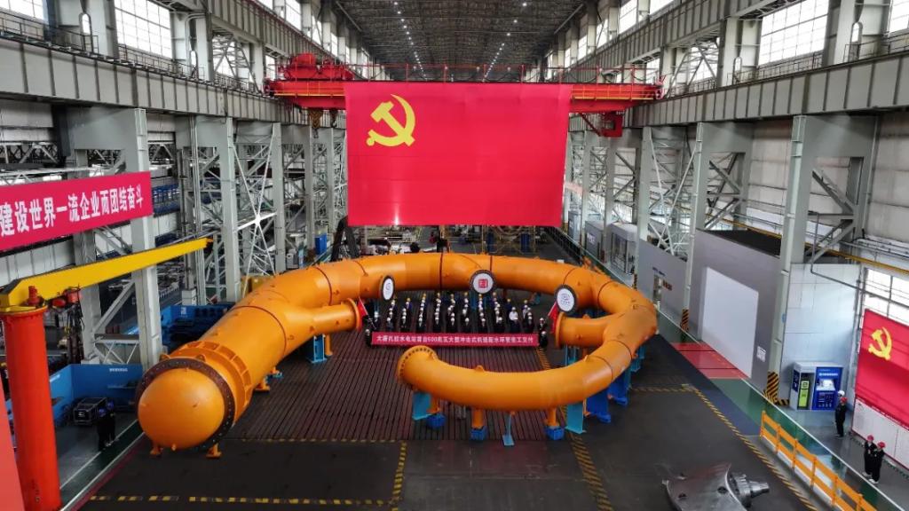 10月21日,由東方電氣集團(tuán)自主研制的世界首臺500兆瓦沖擊式水電機(jī)組配水環(huán)管率先完工交付,標(biāo)志著我國高水頭、大容量沖擊式水電機(jī)組研制取得又一里程碑成果。東方電氣集團(tuán)黨組成員、副總經(jīng)理王軍,大唐西藏公司黨委書記、董事長沈鵬出席完工交付儀式。