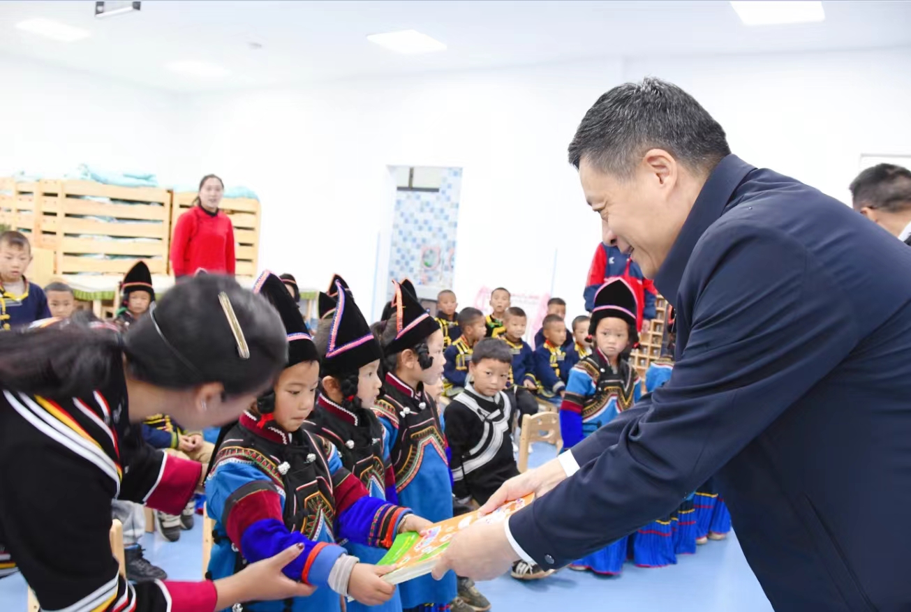 在東方電氣洛且博村幼兒園,俞培根深入了解幼教設施建設情況和當?shù)剡m齡兒童學前教育情況,為幼兒園小朋友贈送書籍繪本。他指出,要發(fā)揮好幼兒園、幼教點作用,以真心真情和更大努力,呵護兒童茁壯成長,抓好“后繼有人”這個根本大計,讓鄉(xiāng)村教育賦能鄉(xiāng)村振興,把偉大事業(yè)推向前進。