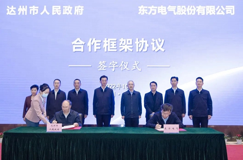 在徐鵬、邵革軍、嚴衛(wèi)東等領導見證下,東方電氣股份有限公司與達州市人民政府簽署合作框架協(xié)議。東方電氣集團黨組成員、副總經(jīng)理李忠軍,達州市委常委、常務副市長丁應虎代表雙方簽字。