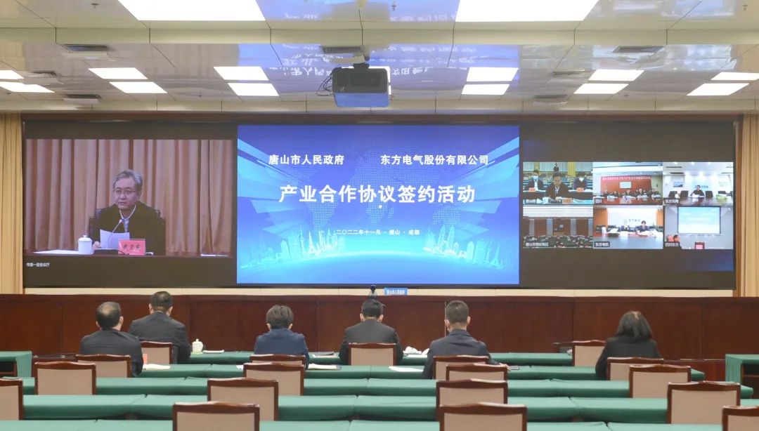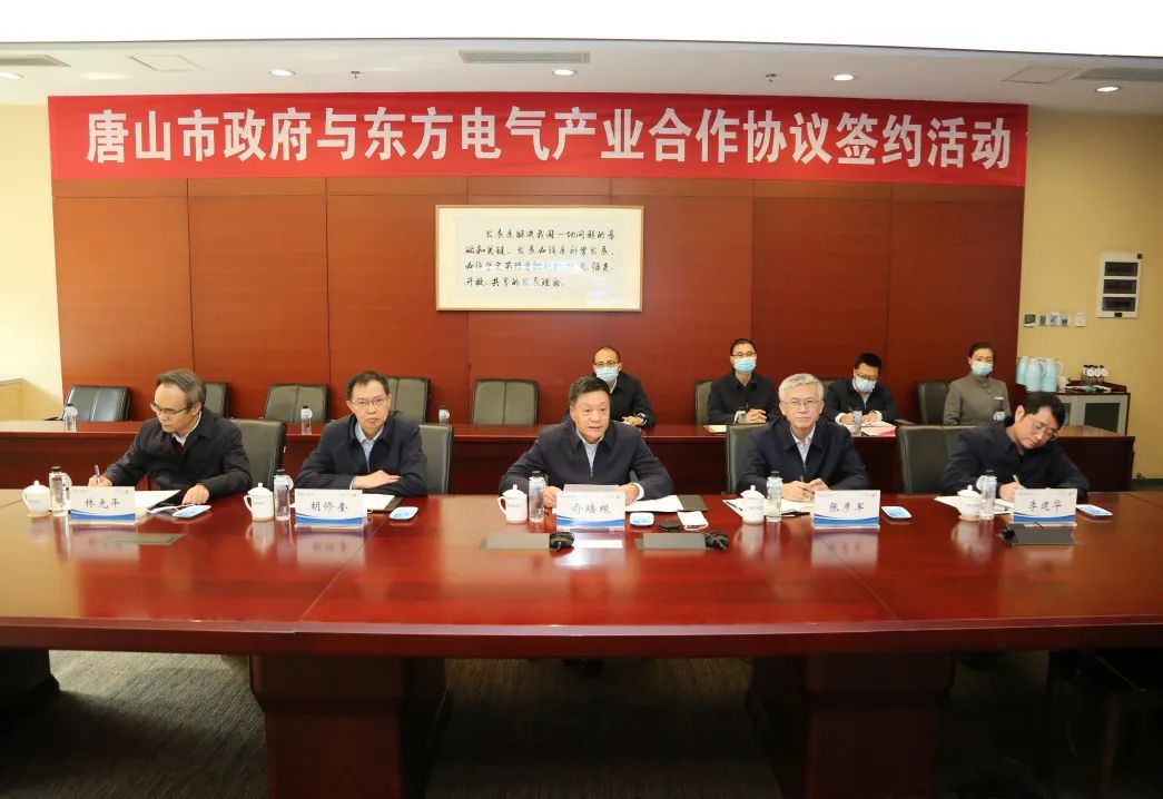 在俞培根、武衛(wèi)東等領(lǐng)導(dǎo)見證下,東方電氣股份有限公司與唐山市人民政府通過云簽約方式簽署產(chǎn)業(yè)合作協(xié)議。張彥軍、郝志軍代表雙方簽字。