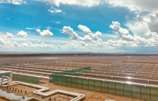 哈密50兆瓦光熱發(fā)電項目是國家能源局批準(zhǔn)的首批20個光熱示范項目之一。東方電氣提供核心系統(tǒng)與設(shè)備,能夠高效利用吸熱塔中的熔鹽吸收太陽光熱量,將約290攝氏度的熔鹽加熱成565攝氏度的高溫熔鹽,再經(jīng)過熱能交換產(chǎn)生高溫高壓蒸汽,推動汽輪發(fā)電機發(fā)電,并配置13小時儲熱系統(tǒng)確保機組24小時連續(xù)穩(wěn)定運行,對保證電力系統(tǒng)安全、穩(wěn)定、高效運行具有重要作用。