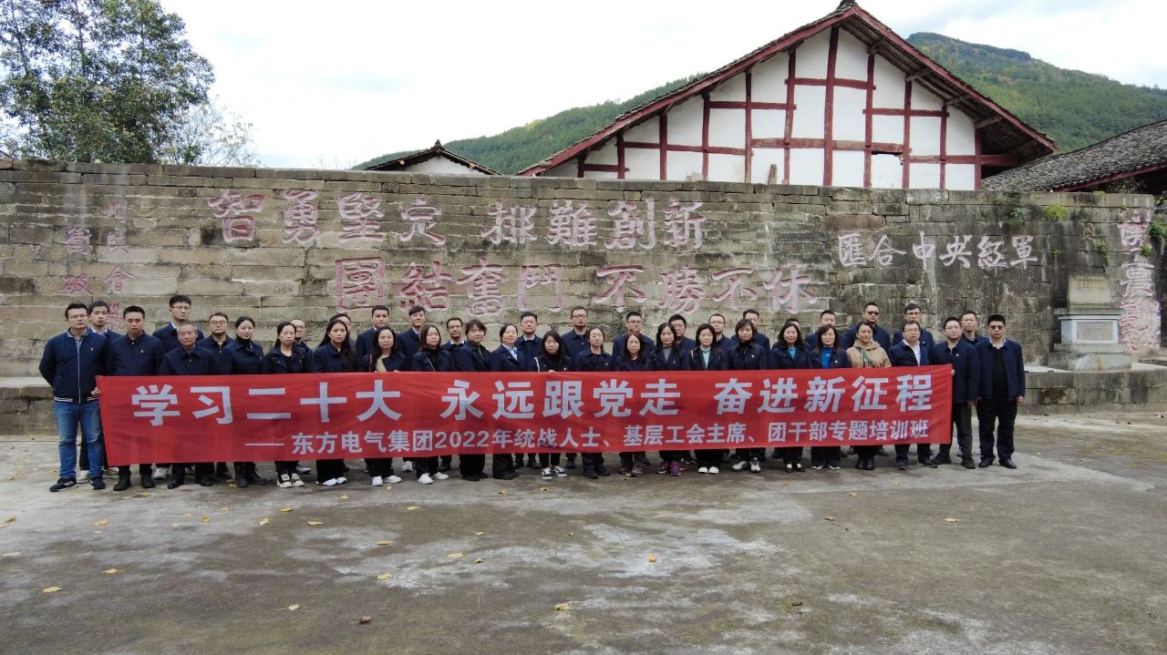 為推動(dòng)學(xué)習(xí)宣傳貫徹黨的二十大精神不斷走向深入,近日,東方電氣集團(tuán)統(tǒng)戰(zhàn)人士、基層工會(huì)主席、團(tuán)干部“學(xué)習(xí)二十大、永遠(yuǎn)跟黨走、奮進(jìn)新征程”專(zhuān)題學(xué)習(xí)班在四川大巴山干部學(xué)院舉行。學(xué)員們賡續(xù)紅色血脈、傳承奮斗精神,向著新的奮斗目標(biāo),出發(fā)!