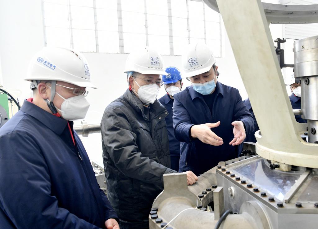 在東方電機(jī),徐鵬深入企業(yè)智能沖擊式水輪機(jī)模型試驗(yàn)臺(tái)、金沖分廠、清潔能源裝備重型制造數(shù)字化車間等地,詳細(xì)了解企業(yè)科研攻關(guān)、數(shù)字化轉(zhuǎn)型、綠色高端制造等情況。強(qiáng)調(diào)企業(yè)要加快實(shí)施創(chuàng)新驅(qū)動(dòng)發(fā)展戰(zhàn)略,以國(guó)家戰(zhàn)略需求為導(dǎo)向,集聚力量進(jìn)行原創(chuàng)性引領(lǐng)性科技攻關(guān),把關(guān)鍵核心技術(shù)牢牢掌握在自己手中。要持續(xù)推動(dòng)發(fā)展方式綠色轉(zhuǎn)型,打造更多高端化、智能化清潔能源裝備,著力推動(dòng)高質(zhì)量發(fā)展。