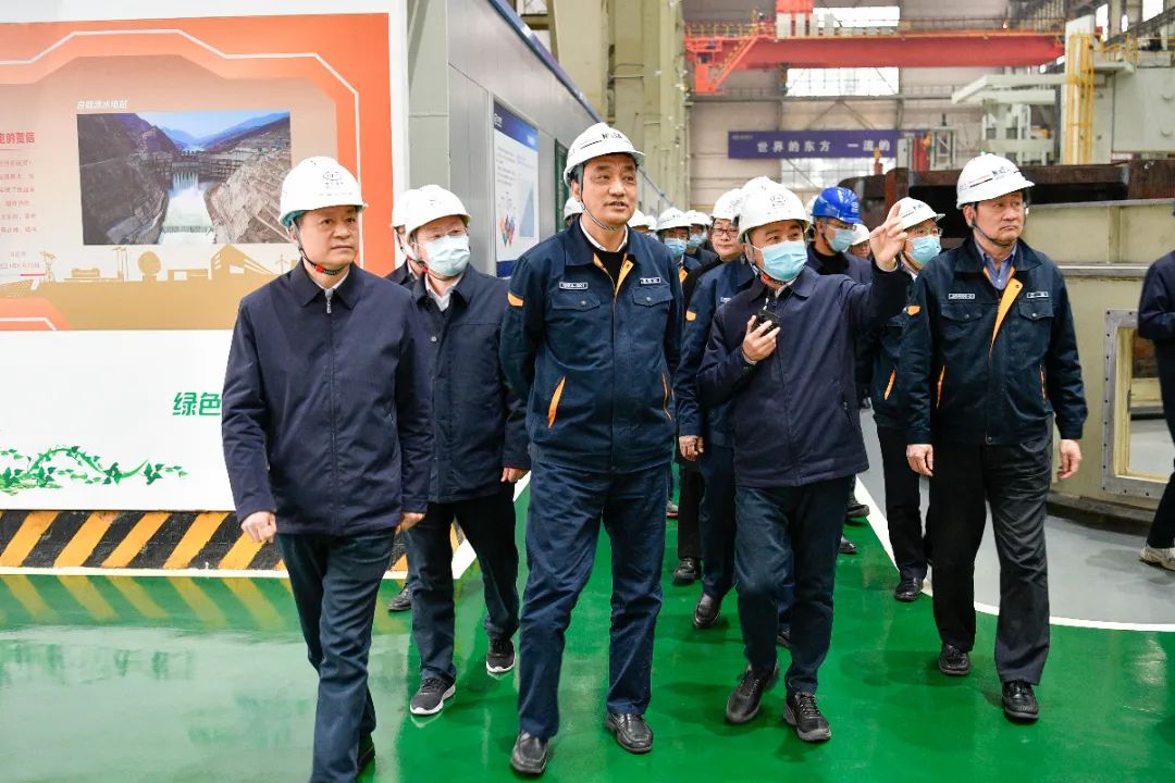 董保同一行先后走訪了東方電機大型清潔能源裝備重型制造數(shù)字化車間、特電新車間、東方法馬通主泵生產(chǎn)車間、東方汽輪機控制棒驅(qū)動機構(gòu)生產(chǎn)車間和葉片加工無人車間,深入了解了企業(yè)核安全設(shè)備生產(chǎn)和智能制造推進情況。