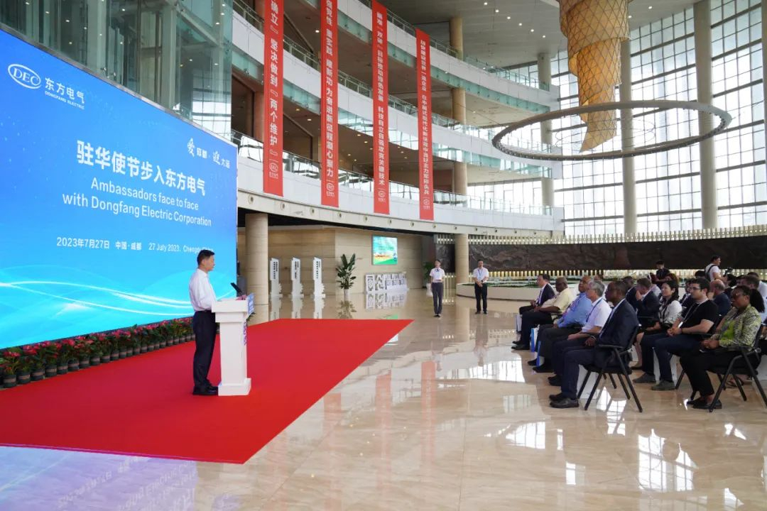 隨后,外賓們共同觀看了東方電氣英文宣傳片,參觀了東方電氣科技展示廳,深入了解東方電氣集團(tuán)積極共建“一帶一路”,以綠色動力驅(qū)動未來可持續(xù)發(fā)展的實(shí)踐與成果。使節(jié)代表們對東方電氣集團(tuán)創(chuàng)新發(fā)展和國際合作取得的成績給予高度評價,希望今后深化相關(guān)領(lǐng)域合作,高質(zhì)量共建“一帶一路”。