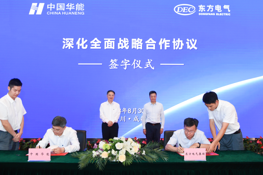 中國華能董事會秘書袁剛,東方電氣股份有限公司副總裁高峰,中國華能、東方電氣集團(tuán)有關(guān)單位負(fù)責(zé)同志參加上述活動。
