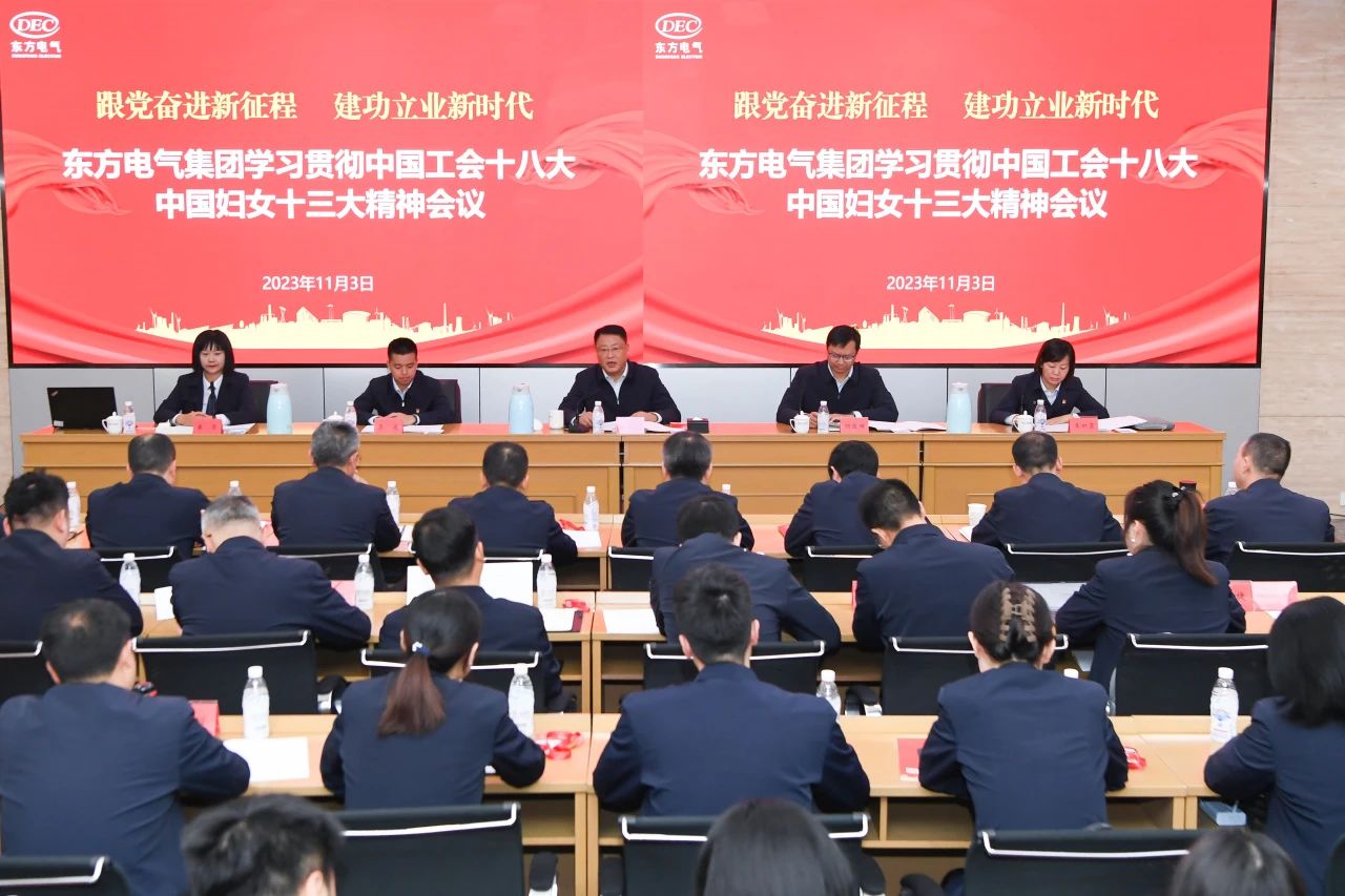 本網(wǎng)訊 11月3日,東方電氣集團(tuán)召開學(xué)習(xí)貫徹中國工會(huì)第十八次全國代表大會(huì)、中國婦女第十三次全國代表大會(huì)精神會(huì)議,認(rèn)真?zhèn)鬟_(dá)學(xué)習(xí)習(xí)近平總書記同中華全國總工會(huì)新一屆領(lǐng)導(dǎo)班子成員和全國婦聯(lián)新一屆領(lǐng)導(dǎo)班子成員集體談話時(shí)的重要講話精神,緊密結(jié)合工作實(shí)際研究貫徹落實(shí)舉措,進(jìn)一步凝聚發(fā)展合力,推動(dòng)工會(huì)工作再上新臺(tái)階,以高質(zhì)量工會(huì)工作賦能加快打造世界一流裝備制造集團(tuán)。集團(tuán)公司董事、黨組副書記宋致遠(yuǎn)出席會(huì)議并講話。