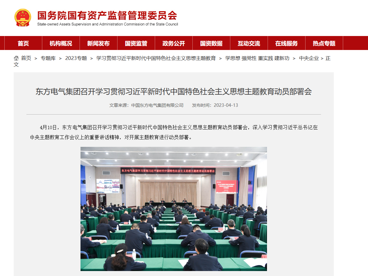 4月10日,東方電氣集團召開學(xué)習(xí)貫徹習(xí)近平新時代中國特色社會主義思想主題教育動員部署會,深入學(xué)習(xí)貫徹習(xí)近平總書記在中央主題教育工作會議上的重要講話精神,對開展主題教育進行動員部署。