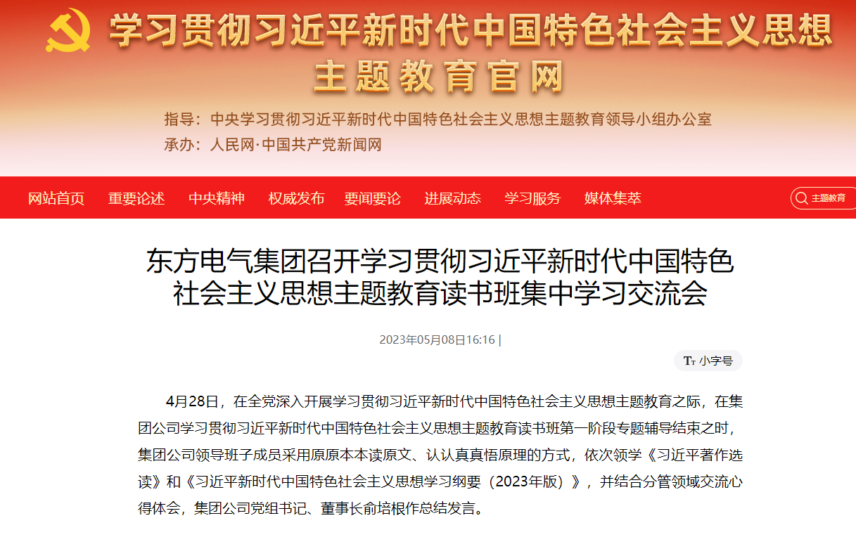 4月28日,在全黨深入開展學習貫徹習近平新時代中國特色社會主義思想主題教育之際,在集團公司學習貫徹習近平新時代中國特色社會主義思想主題教育讀書班第一階段專題輔導結束之時,集團公司領導班子成員采用原原本本讀原文、認認真真悟原理的方式,依次領學《習近平著作選讀》和《習近平新時代中國特色社會主義思想學習綱要(2023年版)》,并結合分管領域交流心得體會,集團公司黨組書記、董事長俞培根作總結發(fā)言。