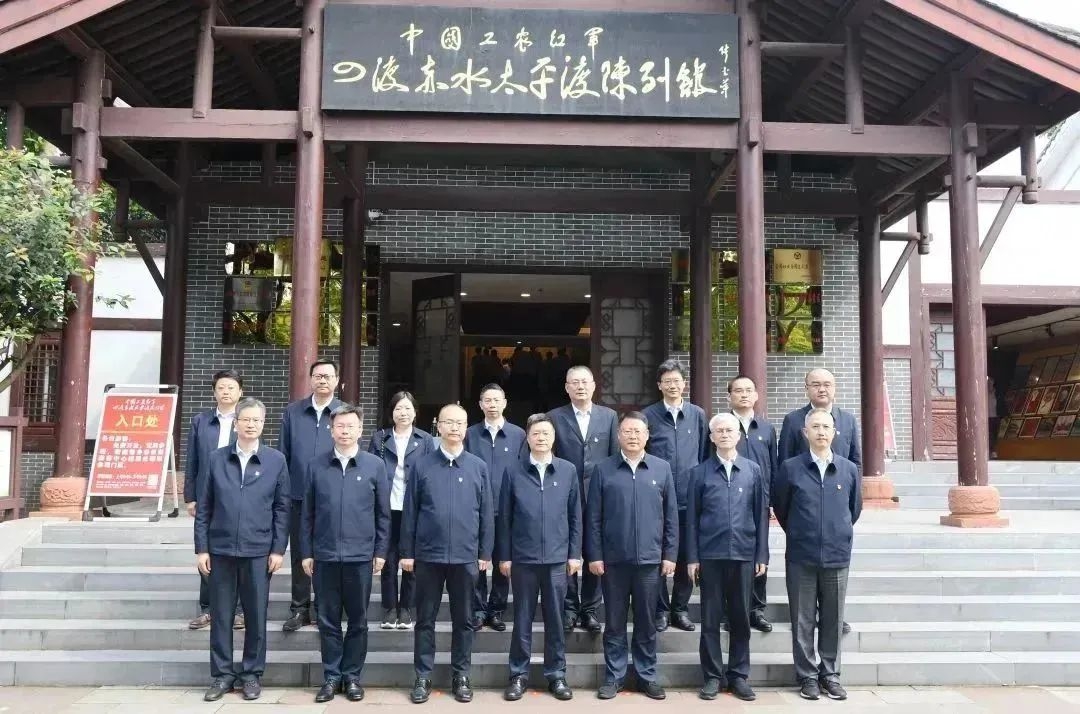 追尋紅色足跡,俞培根一行來到中國工農(nóng)紅軍四渡赤水太平渡陳列館、毛澤東四渡赤水紀(jì)念館等地,通過現(xiàn)場教學(xué)接受了一次全面而深刻的紅色洗禮。在太平渡口紀(jì)念碑前,面對黨旗,俞培根帶領(lǐng)在場黨員領(lǐng)導(dǎo)同志一起重溫入黨誓詞。在俞培根領(lǐng)誓下,鏗鏘有力的宣誓聲響徹赤水河畔,讓現(xiàn)場所有人都深受感染,不斷叩問初心、守護初心,不斷堅守使命、擔(dān)當(dāng)使命,始終做到初心如磐、使命在肩。