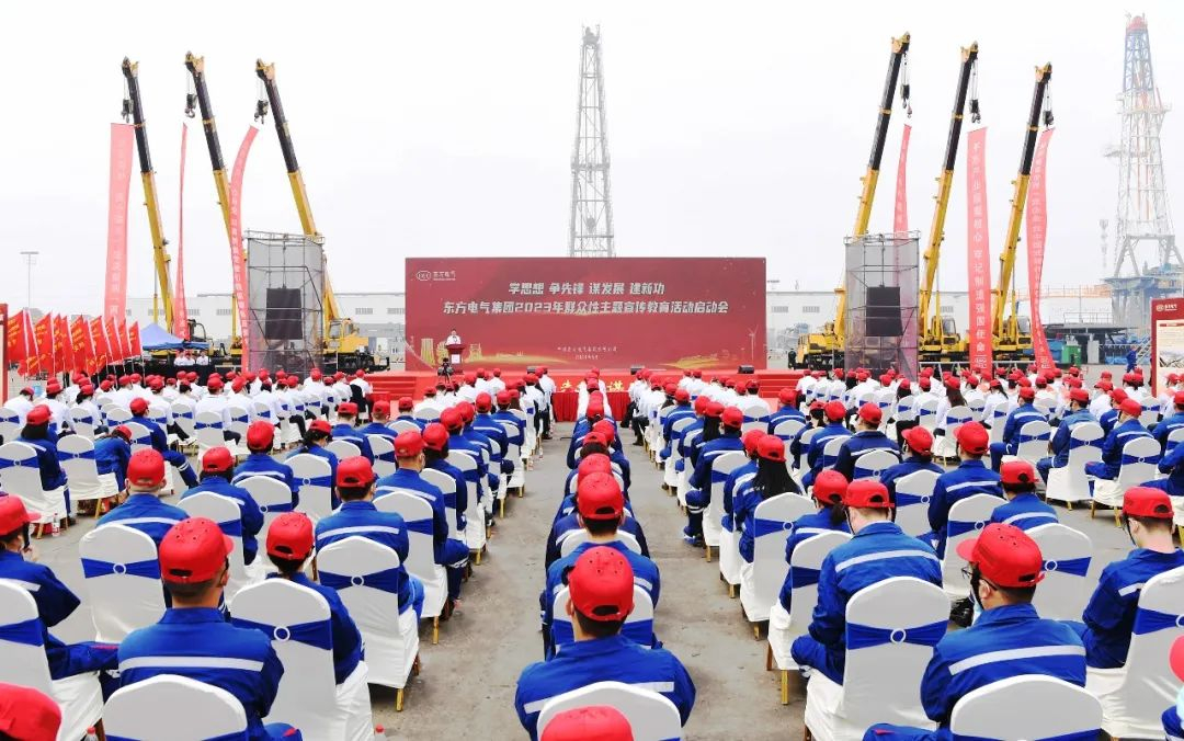 啟動會上還開展了“同·創(chuàng)”文化深植活動。俞培根向東方宏華職工代表贈送企業(yè)文化系列叢書《創(chuàng)業(yè)》《奮斗》《跨越》,青年代表莊冉深情講述了中國“爭氣機”的研制故事,與會人員集體觀看了集團公司文獻紀(jì)錄片《東方》第二集“爭氣爭光”,同唱東方電氣司歌《世界的東方》。
