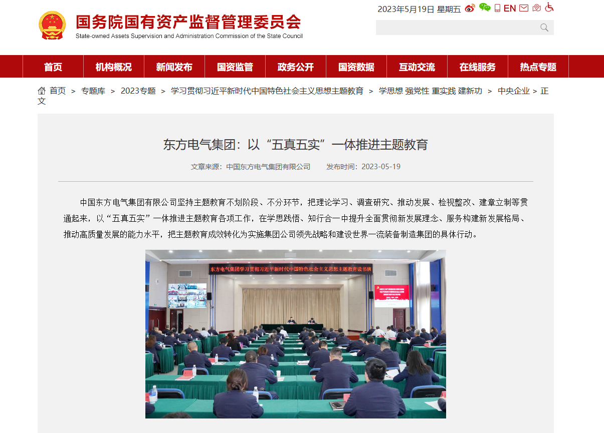 中國東方電氣集團有限公司堅持主題教育不劃階段、不分環(huán)節(jié),把理論學習、調(diào)查研究、推動發(fā)展、檢視整改、建章立制等貫通起來,以“五真五實”一體推進主題教育各項工作,在學思踐悟、知行合一中提升全面貫徹新發(fā)展理念、服務構(gòu)建新發(fā)展格局、推動高質(zhì)量發(fā)展的能力水平,把主題教育成效轉(zhuǎn)化為實施集團公司領(lǐng)先戰(zhàn)略和建設(shè)世界一流裝備制造集團的具體行動。
