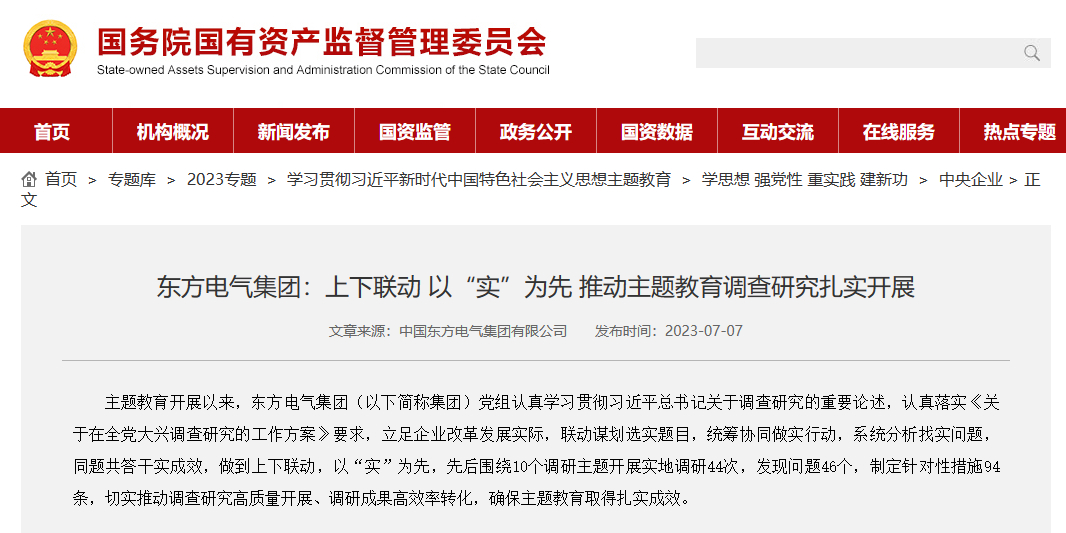 主題教育開展以來,東方電氣集團(tuán)(以下簡稱集團(tuán))黨組認(rèn)真學(xué)習(xí)貫徹習(xí)近平總書記關(guān)于調(diào)查研究的重要論述,認(rèn)真落實《關(guān)于在全黨大興調(diào)查研究的工作方案》要求,立足企業(yè)改革發(fā)展實際,聯(lián)動謀劃選實題目,統(tǒng)籌協(xié)同做實行動,系統(tǒng)分析找實問題,同題共答干實成效,做到上下聯(lián)動,以“實”為先,先后圍繞10個調(diào)研主題開展實地調(diào)研44次,發(fā)現(xiàn)問題46個,制定針對性措施94條,切實推動調(diào)查研究高質(zhì)量開展、調(diào)研成果高效率轉(zhuǎn)化,確保主題教育取得扎實成效。