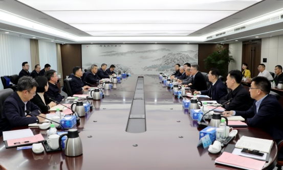 俞培根與中核集團(tuán)黨組書(shū)記、董事長(zhǎng)余劍鋒就共同服務(wù)國(guó)家戰(zhàn)略、進(jìn)一步深化雙方戰(zhàn)略合作、拓展合作領(lǐng)域、加強(qiáng)資源協(xié)同等進(jìn)行了友好交流。中核集團(tuán)黨組成員、副總經(jīng)理申彥鋒,黨組成員、總會(huì)計(jì)師王學(xué)軍參加會(huì)談。