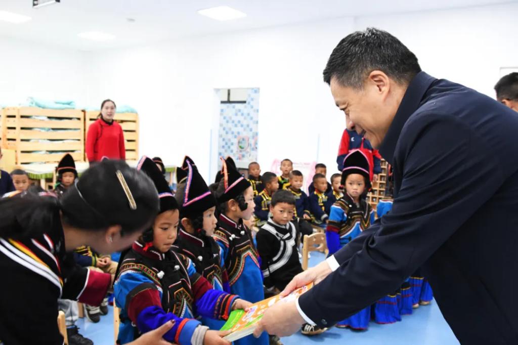 在東方電氣洛且博村幼兒園,俞培根深入了解幼教設(shè)施建設(shè)情況和當(dāng)?shù)剡m齡兒童學(xué)前教育情況,為幼兒園小朋友贈(zèng)送書籍繪本。他指出,要發(fā)揮好幼兒園、幼教點(diǎn)作用,以真心真情和更大努力,呵護(hù)兒童茁壯成長(zhǎng),抓好“后繼有人”這個(gè)根本大計(jì),讓鄉(xiāng)村教育賦能鄉(xiāng)村振興,把偉大事業(yè)推向前進(jìn)。