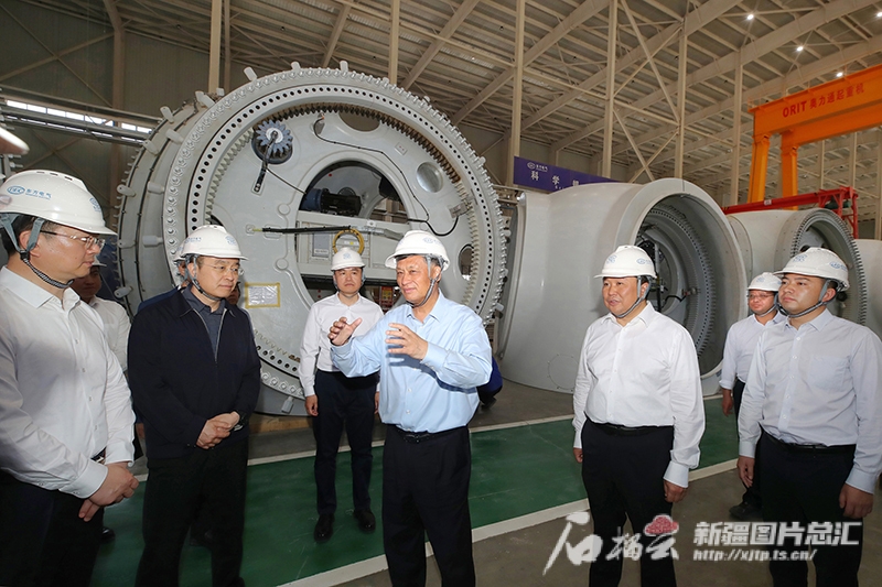 ▲5月19日,馬興瑞走進(jìn)新疆東方風(fēng)電新能源有限公司生產(chǎn)車間,詳細(xì)了解風(fēng)機(jī)等設(shè)備生產(chǎn)制造情況。石榴云/新疆日?qǐng)?bào)記者 崔志堅(jiān)攝