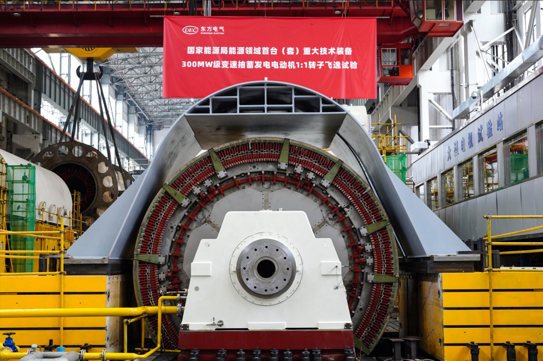 本網(wǎng)訊8月16日上午,國(guó)家能源局能源領(lǐng)域首臺(tái)(套)重大技術(shù)裝備項(xiàng)目——300兆瓦級(jí)變速抽水蓄能機(jī)組發(fā)電電動(dòng)機(jī)1:1轉(zhuǎn)子,在東方電氣集團(tuán)東方電機(jī)有限公司順利通過(guò)飛逸試驗(yàn),動(dòng)態(tài)穩(wěn)定性、可靠性等得到充分驗(yàn)證,標(biāo)志著我國(guó)變速抽水蓄能機(jī)組自主研制取得重大突破!