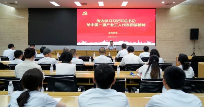 本網(wǎng)訊 近日,習(xí)近平總書記給中國(guó)一重產(chǎn)業(yè)工人代表回信,對(duì)產(chǎn)業(yè)工人予以親切勉勵(lì),對(duì)中央企業(yè)提出殷切希望。作為能源裝備領(lǐng)域“國(guó)家隊(duì)”,東方電氣集團(tuán)各級(jí)黨組織迅速響應(yīng)、認(rèn)真學(xué)習(xí),掀起學(xué)習(xí)貫徹習(xí)近平總書記重要回信精神熱潮。
