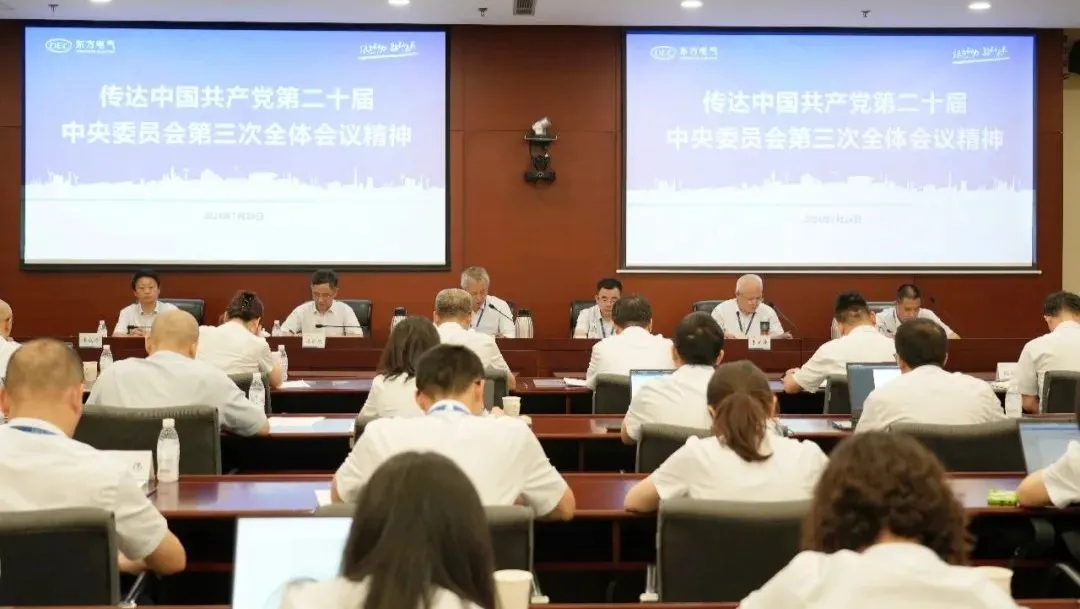 7月24日,東方電氣集團黨組召開會議,傳達學習黨的二十屆三中全會精神,結合實際部署貫徹落實舉措。集團公司黨組書記、董事長俞培根主持會議。黨組成員宋致遠、袁明剛、李忠軍、王軍、胡賢甫出席會議。